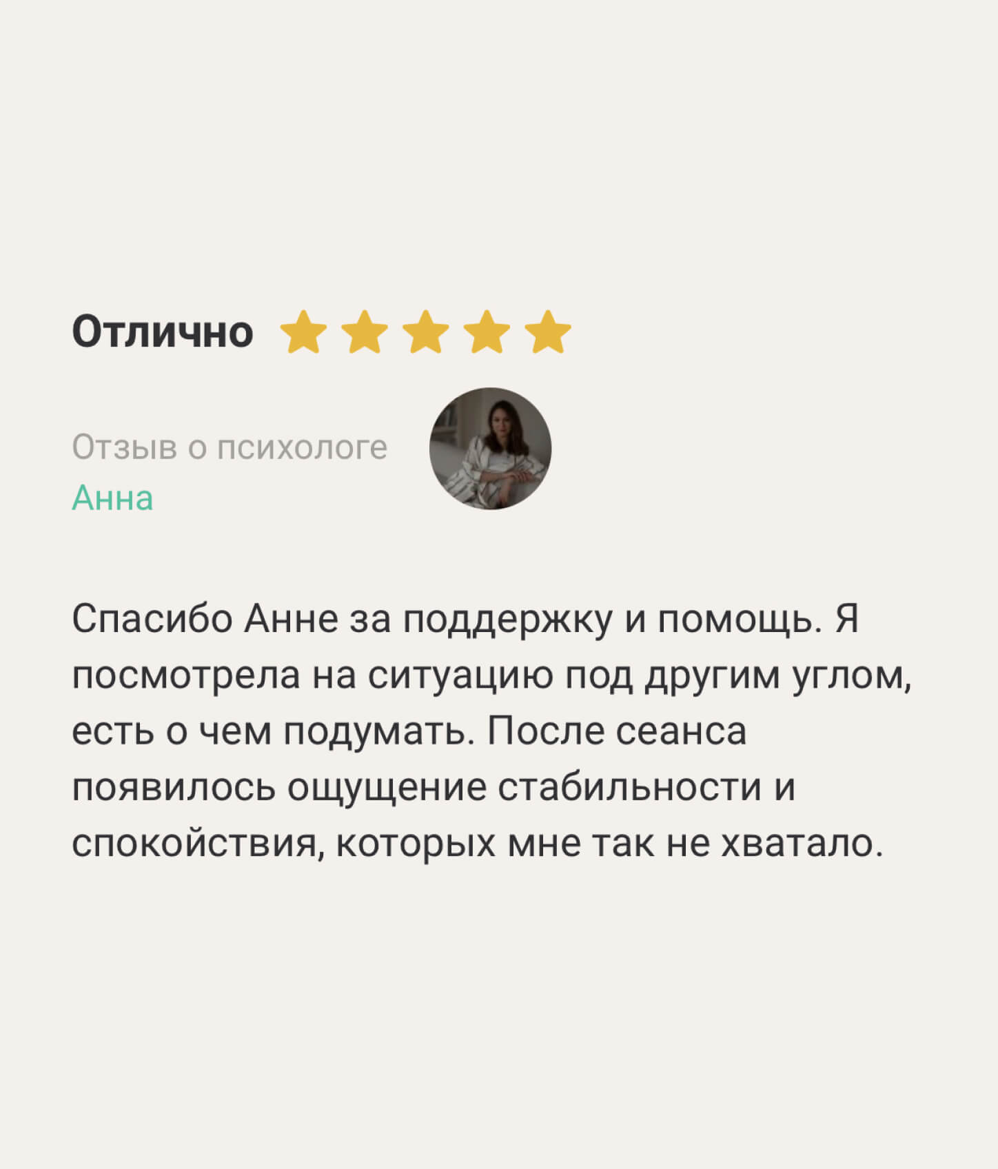 Как опытный психолог я помогаю людям преодолевать трудности, справляться с тревогой и находить уверенность в себе. Мои методики основаны на индивидуальном подходе